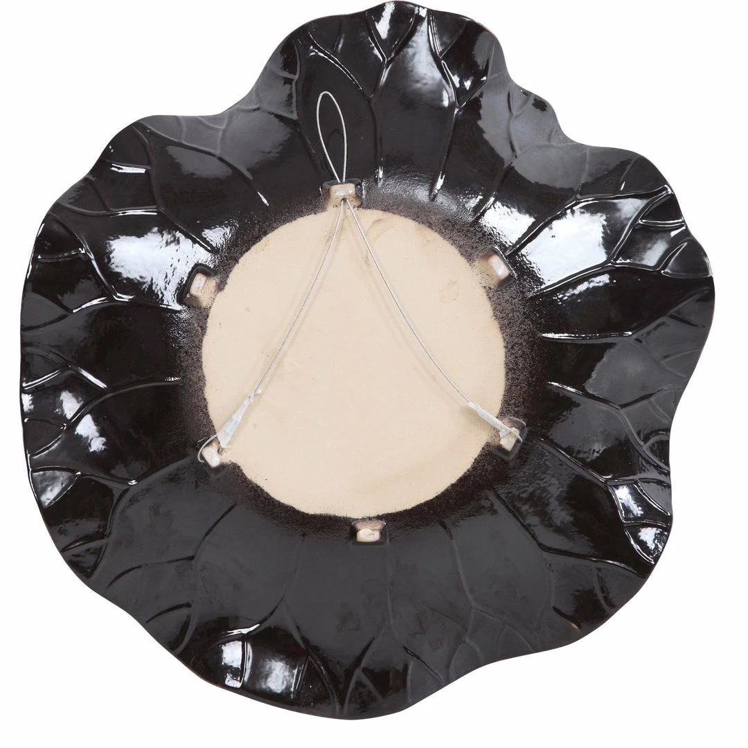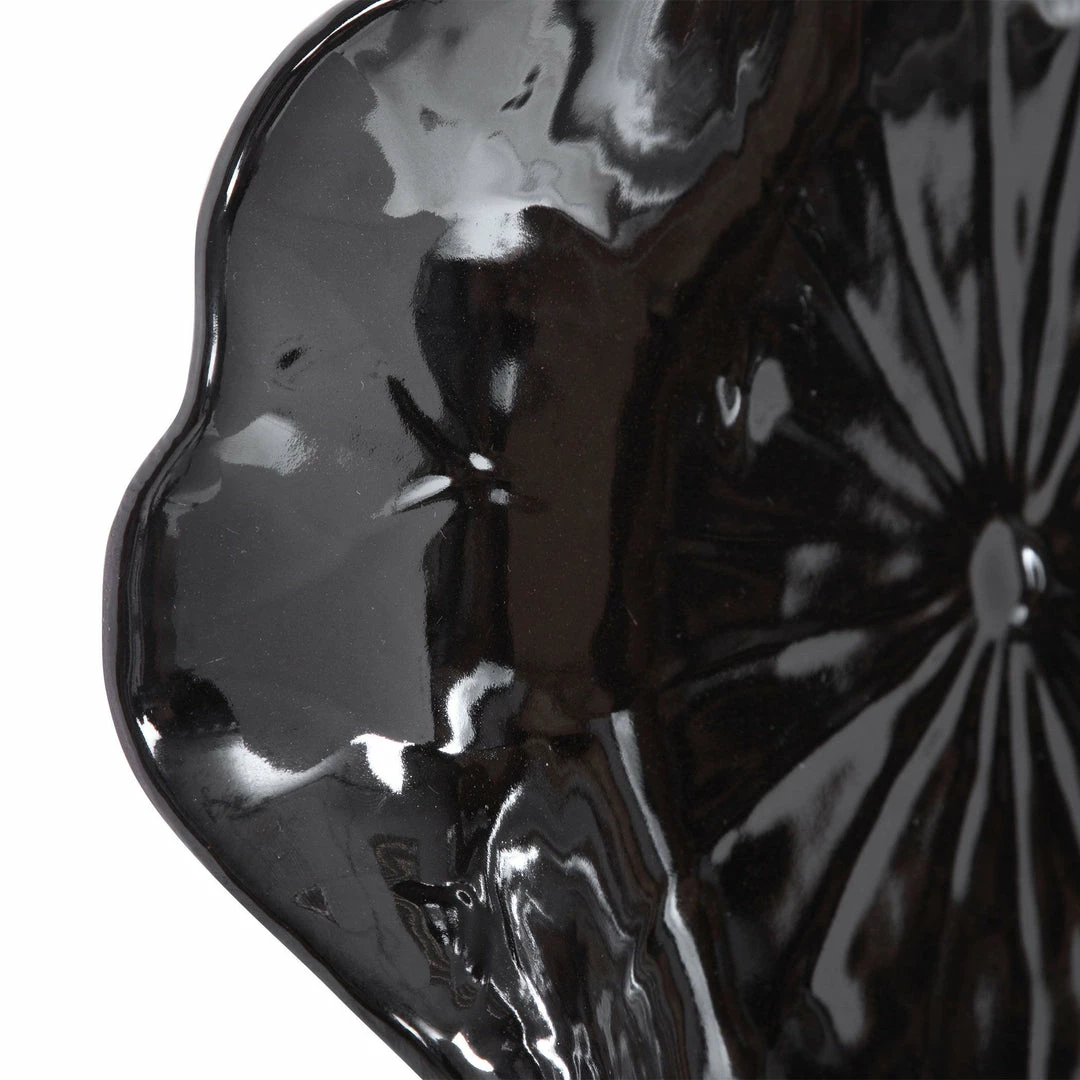 A Trio Of Ceramic Flowers With Detailed Veining, Glazed In A Glossy Black Tone. May Be Hung On Wall Or Used As Tabletop Accessory. Sizes: Sm-11x3x11, Med-15x3x15, Lg-18x4x18