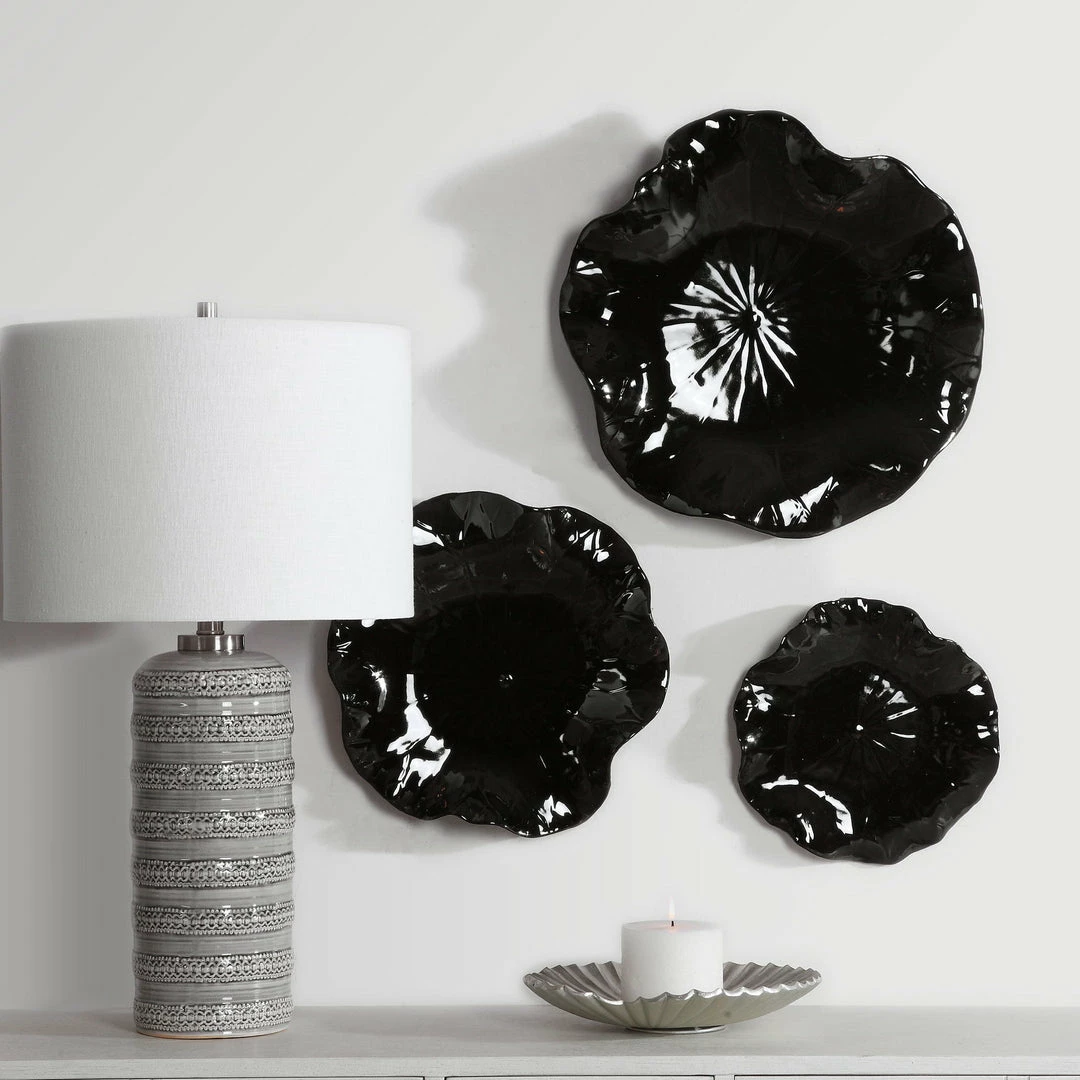 Uttermost Abella Black Ceramic Wall Decor, S/3