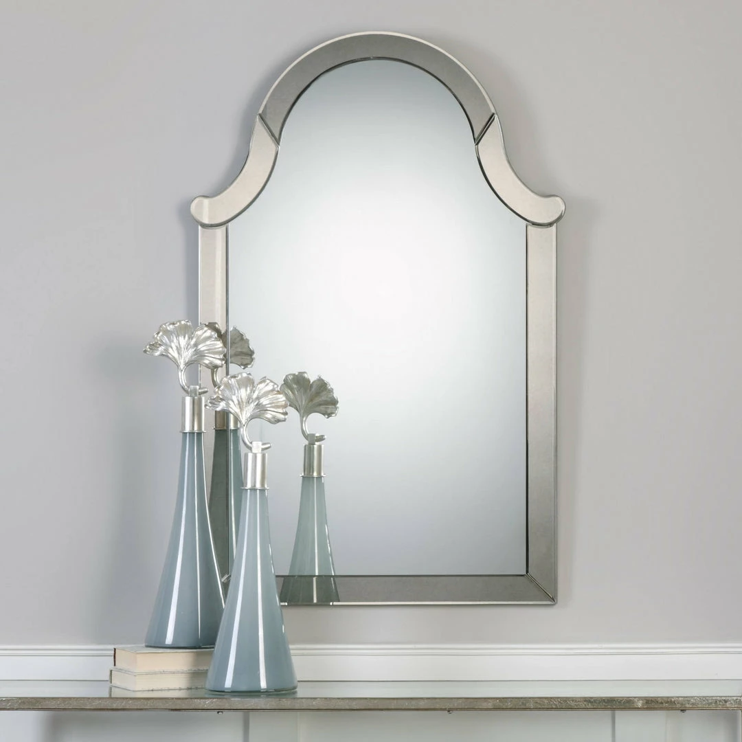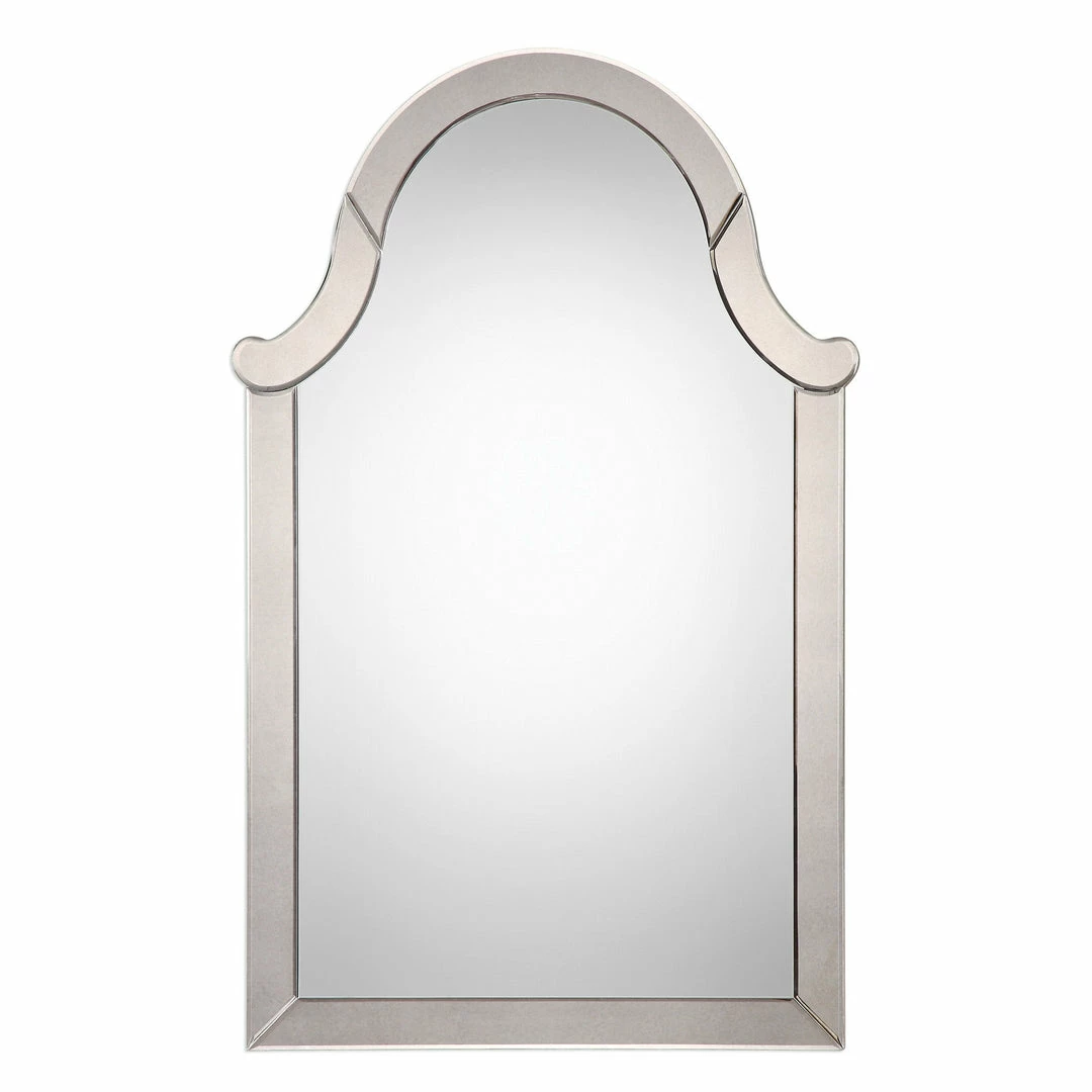 This Frameless Mirror Featuring Hand Beveled Side Mirrors, Displays An Impressive Arch Top.