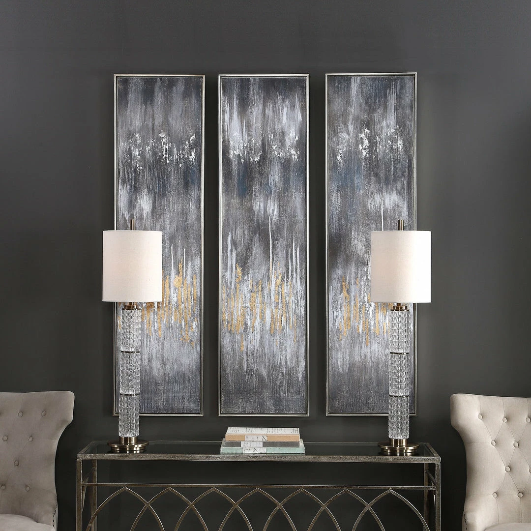Uttermost Gray Showers Hand Painted Canvases, Set/3