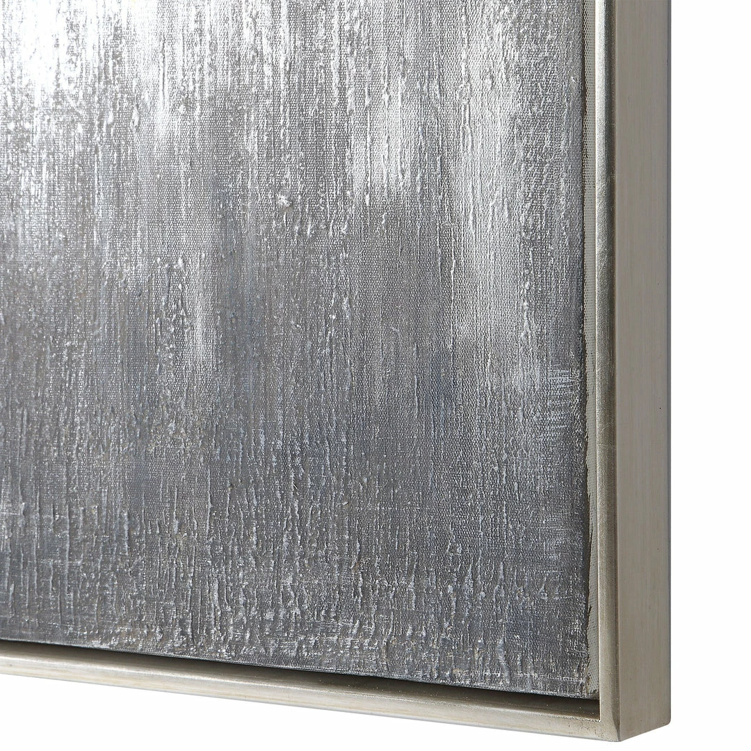 Hand Painted On Canvas These Abstract Pieces Showcase A Metallic Silver, Gold Leaf, And Ivory Color Palette. Silver Leaf Gallery Frames Complete The Artwork. Due To The Handcrafted Nature Of This Artwork, Each Piece May Have Subtle Differences.