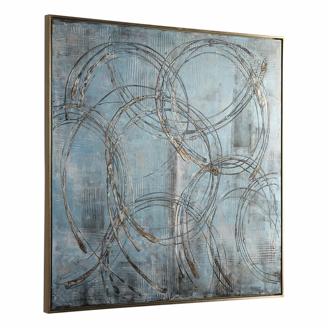 Hand Painted In A Modern, Denim Blue Shade, This Abstract On Canvas Exudes A Mid-century Style. The Geometric Design Is Heavily Textured With Walnut, Charcoal, And Silver Accents. Due To The Handcrafted Nature Of This Artwork, Each Piece May Have Subtle Differences. This Piece May Be Hung Horizontal Or Vertical.