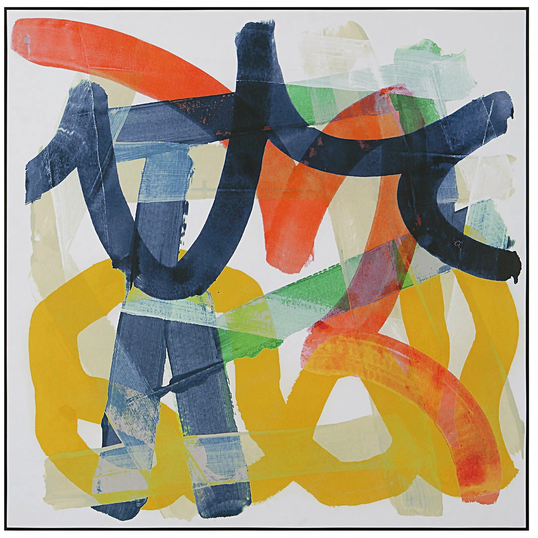 This Framed Graffiti Print Is A True Work Of Modern Art. The Print Displays A Multitude Of Abstract Channels In Bright Pops Of Mustard, Lime, Navy, And Denim Accented By A Petite Jet Black Metal Frame. This Piece May Be Hung Horizontal Or Vertical. Artwork By Cartissi.