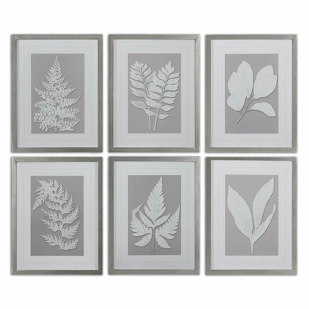 Elegant And Sophisticated, These Botanical Prints Feature A Contemporary Color Palette And Design. Each Two-toned Print Is Accented By Classic, Double V-grooved, White Mats. A Silver Leaf Frame With A Champagne Wash Completes Each Piece Of Artwork. Each Print Is Placed Under Protective Glass.