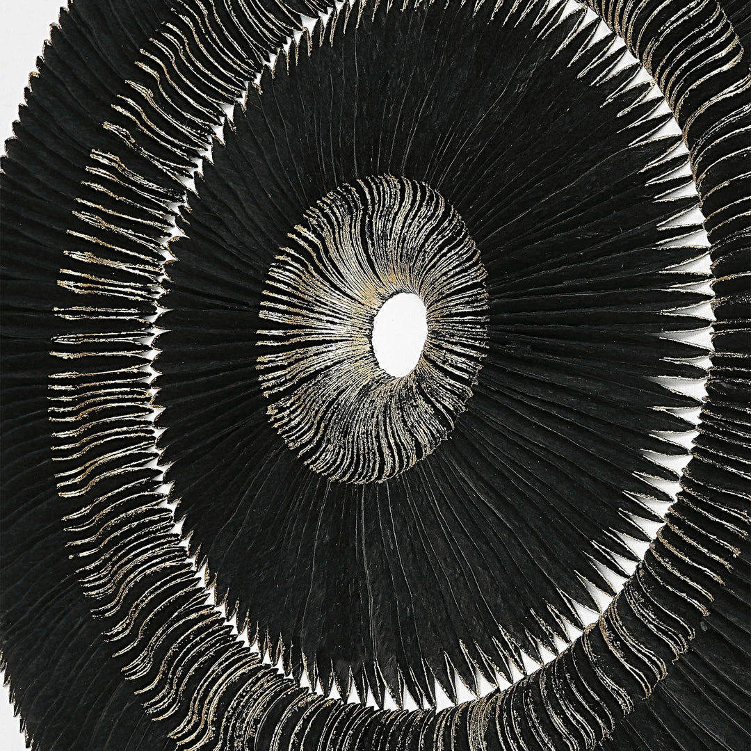 Handcrafted By Skilled Artisans, This Wall Decor Features A Striking Black And Gold Leaf Medallion. Artwork Is Set Against A White Linen Backing In A Black Shadowbox Style Pine Wood Frame Under Glass.