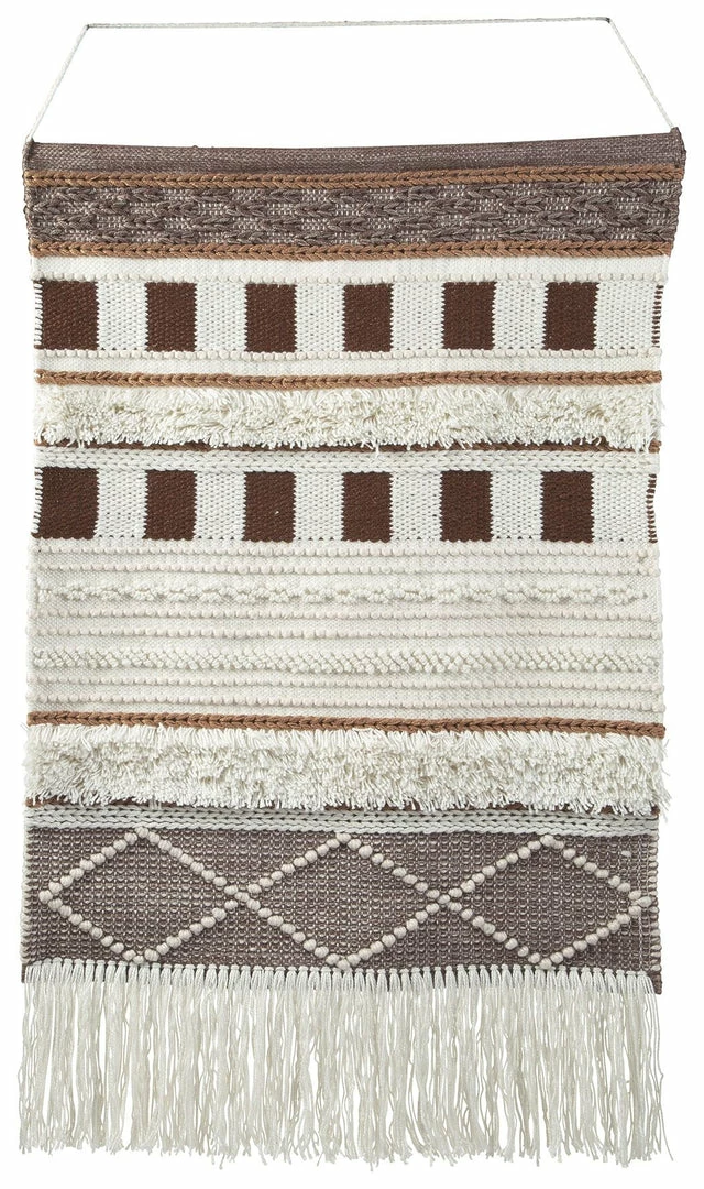 Dream weaver. What else would you call this wonderfully textural tapestry in soothing neutral tones? Channeling the spirit of boho-chic design, this wall hanging will add interest to your wall-scape, inside or out.