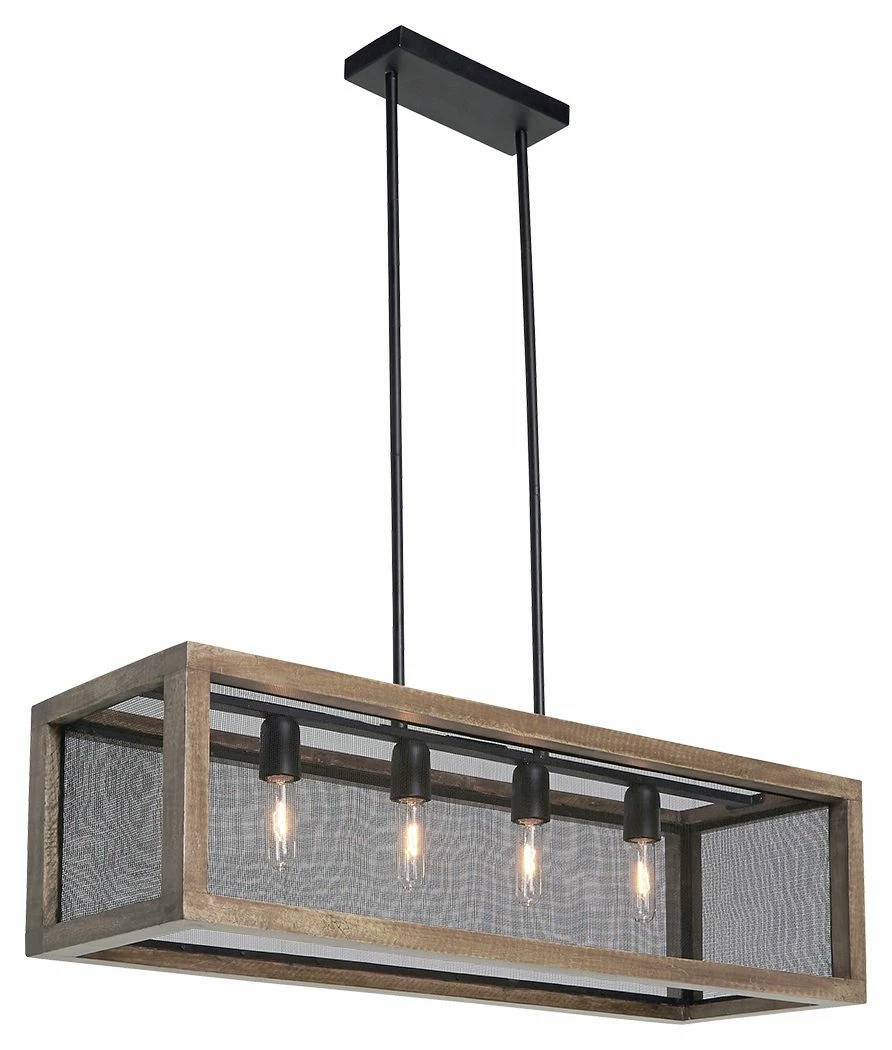 Delightfully chic over a dining room table, breakfast bar or kitchen island, this rectangular pendant light is a clear winner for form and function. Adjustable height rods make it that much more accommodating. Naturally finished wood and black finished metal bring an earthy sensibility to light.