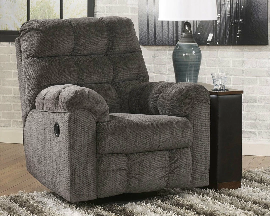 If its quilted bustle back weren’t enough, this swivel rocker recliner has overstuffed arms that elevate comfort to new heights. Ultra-soft chenille upholstery makes this piece beyond luxurious.