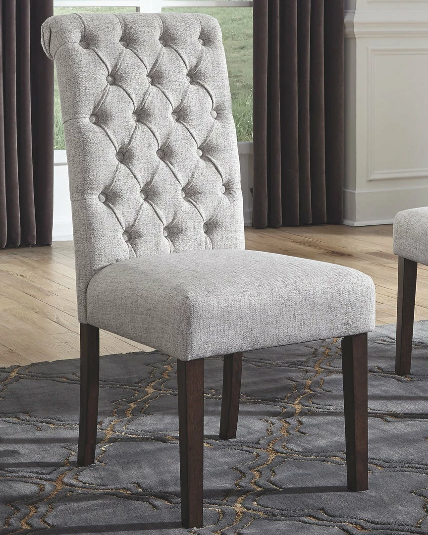 You love the look of traditional furnitureโas long as itโs not overly formal. Behold the best of both worlds in this upholstered dining room chair. The combination of classic and up-to-date design proves that opposites really do attract. Sleek lines and a rich finish showcase its craftsmanship, while sumptuous cushioning and button-tufted upholstery attest to its comfort. With these fine details, you can dress up a room, yet keep it feeling casual for today’s lifestyle.