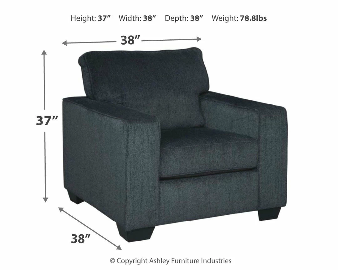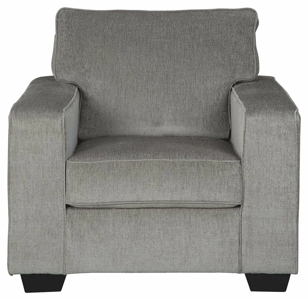 If style is the question, then the Altari chair is the answer. Its decidedly contemporary profile is enhanced with plump cushioning and a chenille-feel upholstery, so pleasing to the touch. Rest assured, this chair in slate gray is sure to play well with so many color schemes.