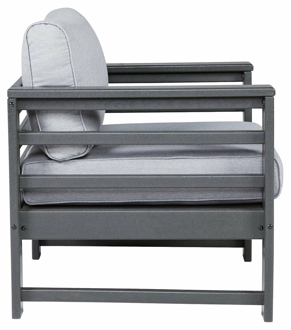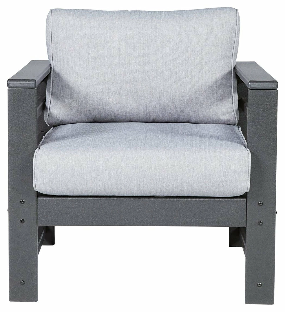 Indulgently comfortable furniture shouldn’t be limited to inside spaces. Create your own outdoor oasis with this cushioned lounge chair. A study in form and function, the trend-right charcoal gray frame is crafted from MEGA TUFF™ HDPE material for durability and weather resistance. Cushions wrapped in high-performing Nuvella® fabric are comfortable and carefree.