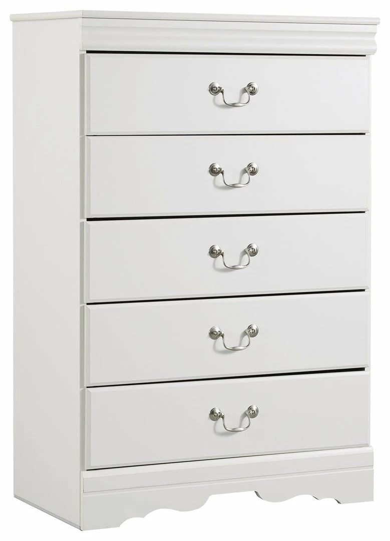 This chest of drawer’s crisp cottage white gives traditional Louis Philippe profiling a delightful style awakening. The look is timeless. The feel? Right at home. Five smooth-gliding drawers with antiqued bail pulls beautifully accommodate.