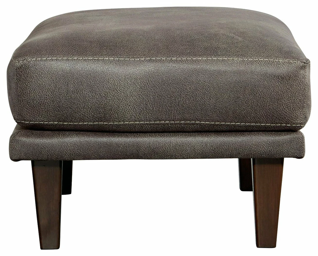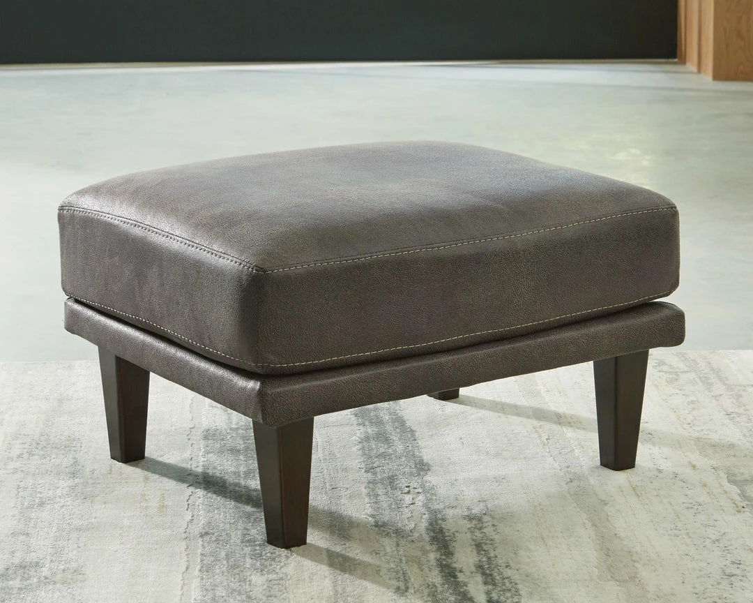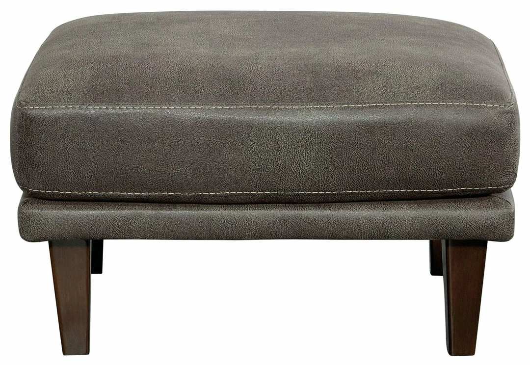 For a fresh spot in your space, turn to this designer ottoman. This invigorating ottoman breathes warmth into your home with its striking gray faux leather upholstery and tapered legs. Wind down at the end of a long day with your feet propped up on this canyon of comfort.