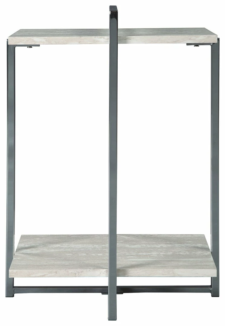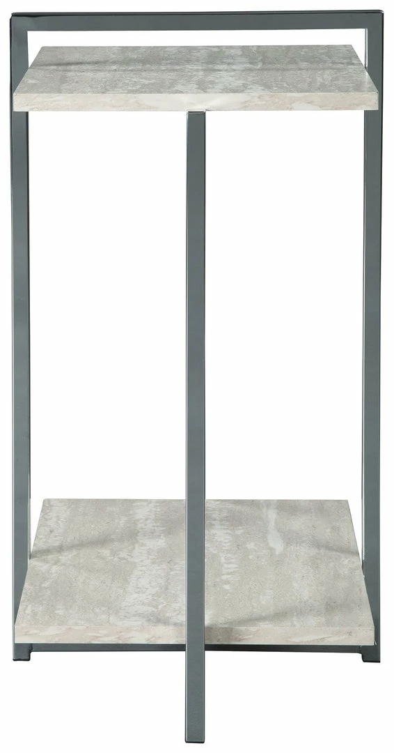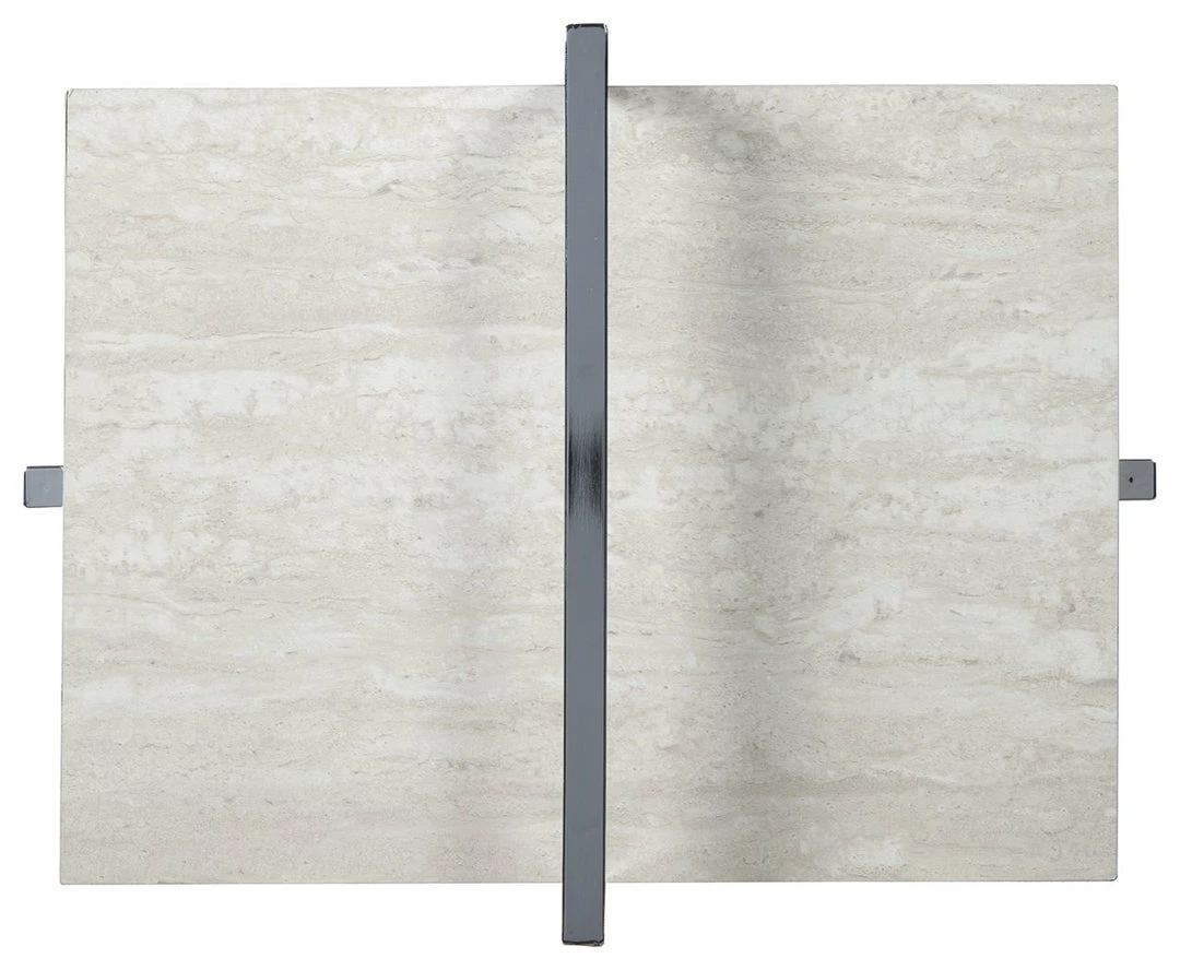 Contemporary style gets a modern attitude in this side table. The replicated travertine stone shelf offers chic sophistication while the box design of the metal frame creates negative space to offer the illusion of more room.