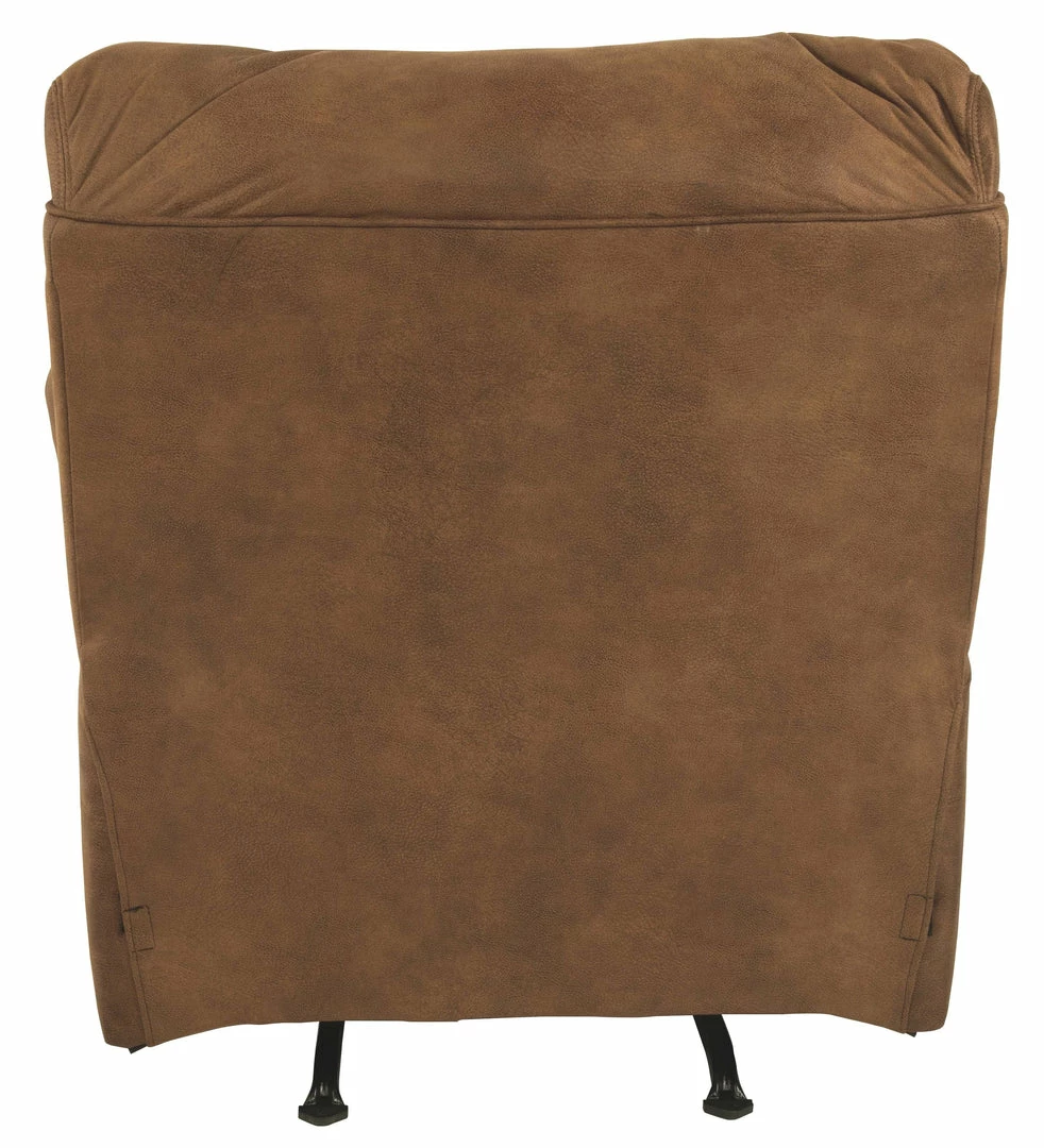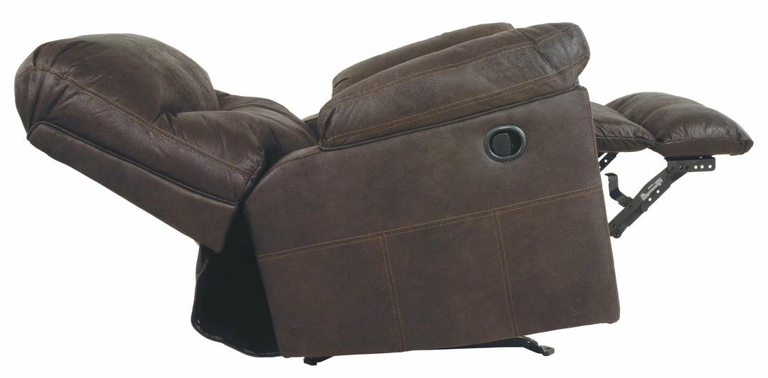 Rock the cool look of leather minus the hefty price tag with this rocker recliner. Rich with tonal variation, the indulgently soft upholstery sure looks like the real thing. And talk about indulgent comfort. Double stuffed armrests and sumptuous cushions cradle and support in all the right places. The recliner’s distinctive scooped stitching adds contemporary flair.