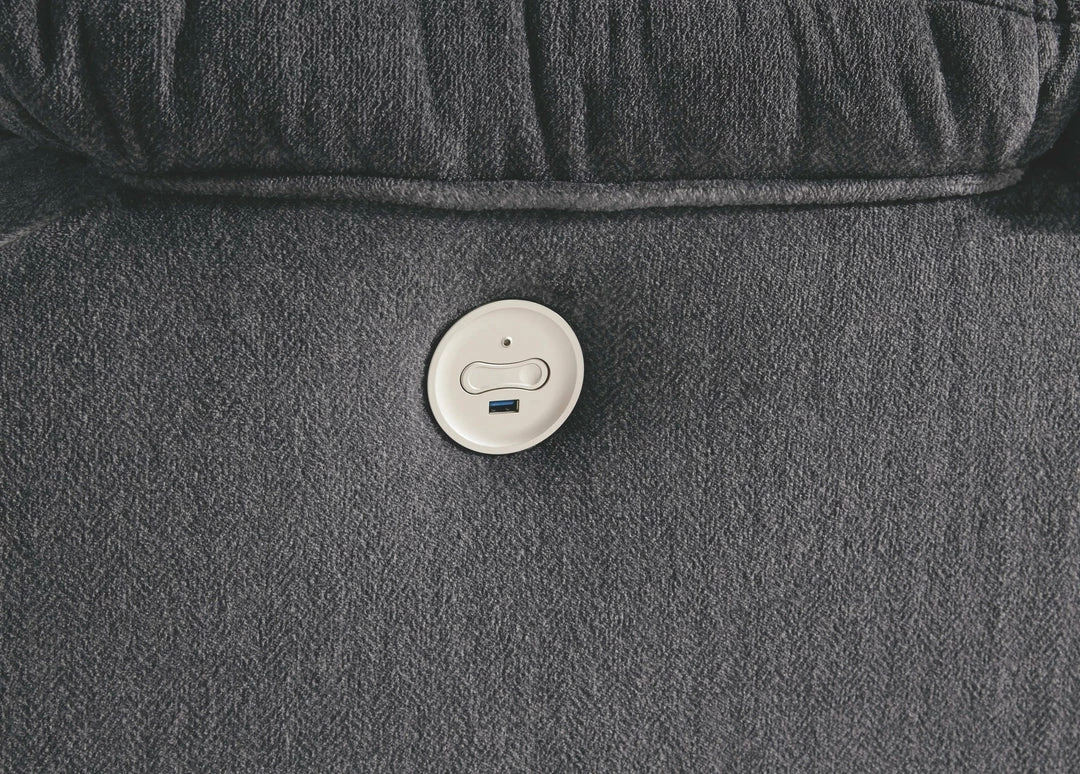 If highly contemporary looks and a heavenly feel sit well with you, rest your eyes on this power rocker recliner. Padded velvet upholstery has a plush high pile that’s so soft to the touch. Jumbo contrast stitching adds fashion-forward flair, while radius cut arm frame incorporates cool, curvaceous interest. At your fingertips: one-touch power control with a zero-draw USB plug-in that’s not only convenient but also energy efficient. When it comes to high style at a down-to-earth price, this power recliner really brings it home.
