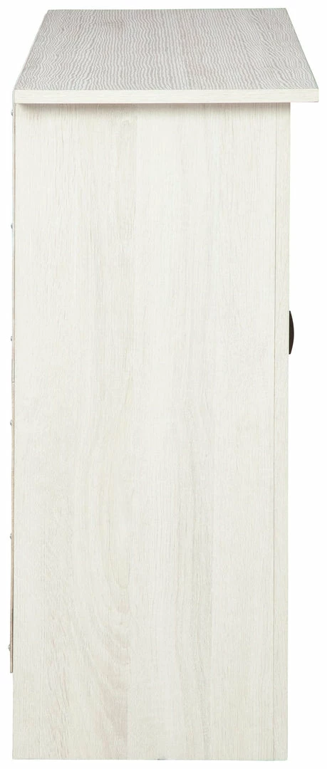 - Made of engineered wood in antique white wood grained effect laminate