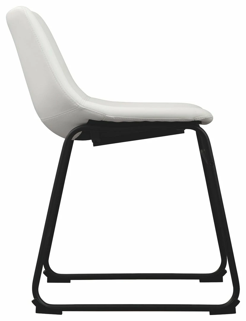 With its distinctive contoured bucket seat and tubular metal base, this dining chair serves up a fresh twist on mid-century inspired style. Faux leather upholstery has a charmingly vintage tone. What a timeless look for eat-in kitchens and casually cool dining rooms.