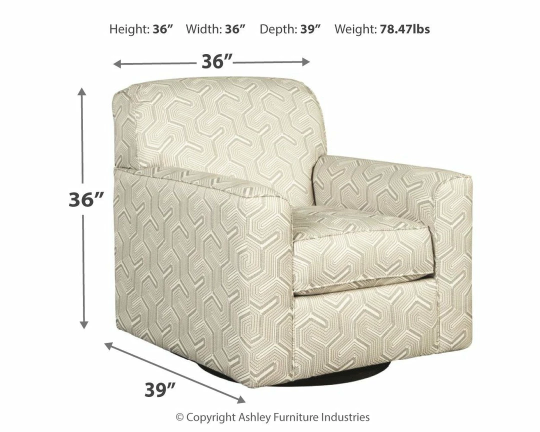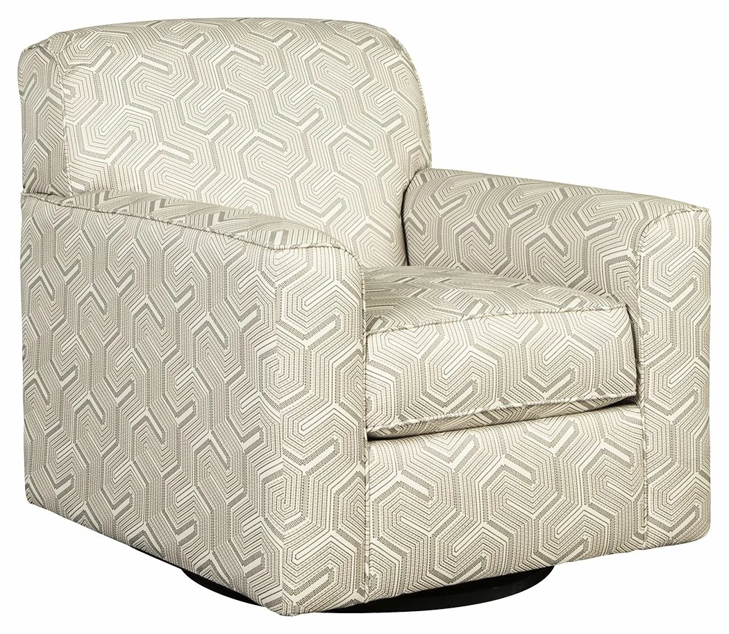 Merging an eye-catching geometric pattern with an ultra-soft and soothing granite gray palette, this swivel accent chair is brilliantly contemporary, yet not overly bold. Rest assured, this sumptuous chairโs 360-degree swivel will make your living space that much more livable.
