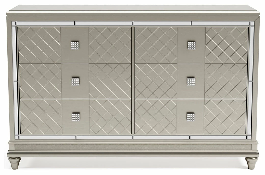 When nothing but the best will do, the opulent finishes and show stopping design of this dresser is nothing short of spectacular. Embossed diamond-patterned drawer fronts with crystalline pulls are surrounded by beveled mirrored detailing for a look that evokes a sense of ease and elegance. What a beautiful reflection of your good taste.