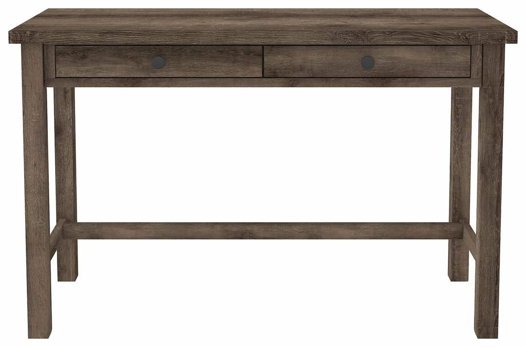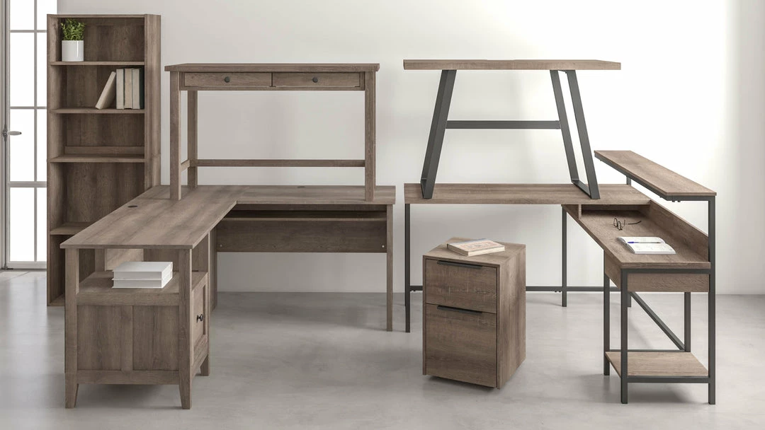 Clean-lined and contemporary—but far from stark—this home office desk is a fresh style awakening. Sleek scale makes it a natural fit for smaller spaces. Effortlessly combining modern farmhouse design with urban attitude, the replicated weathered oak grain plays perfectly with the chic yet earthy aesthetic.