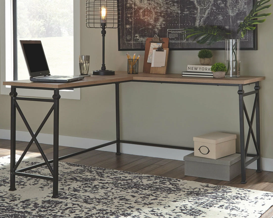 Whether you’re working a classic, contemporary or modern farmhouse aesthetic, this two-tone home office corner desk has the corner on style. Offering loads of surface space, this corner desk pairs a “reclaimed” top with a sturdy black metal base with X-brace design for maximum style with minimal fuss.