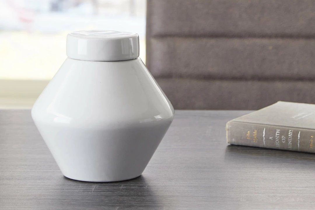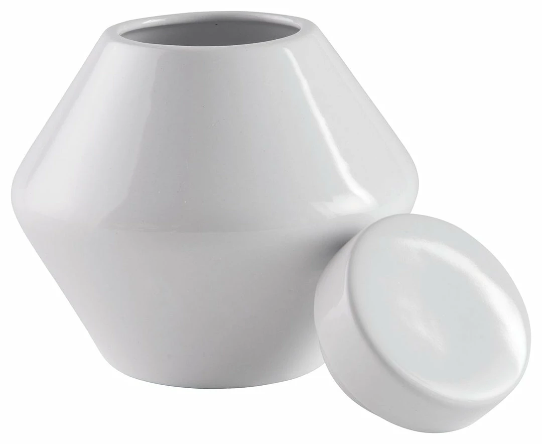 Show off your sense of curated good taste with this glazed ceramic jar with removable lid. Minimalistic and modern, this set is the embodiment of sleek style.