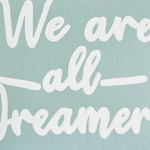 This inspirational quote pillow with velvet applique in light green and white is sure to inspire with a positive vibe. Send a motivational message with this pillow.