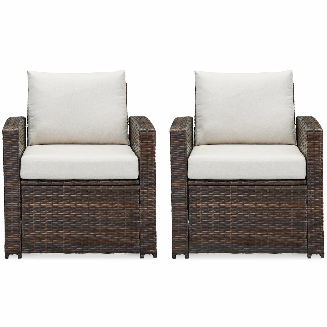 Complete your outdoor oasis with this set of two lounge chairs with cushions. A dark brown resin that’s wicker woven on a heavy-duty steel frame keeps your patio perfectly stylish, with the added bonus of durability. The neutral-colored cushions blend seamlessly with your other outdoor decor and are made with our high-performance Nuvella® fabric that’s fade-resistant, stain-resistant and a breeze to clean.