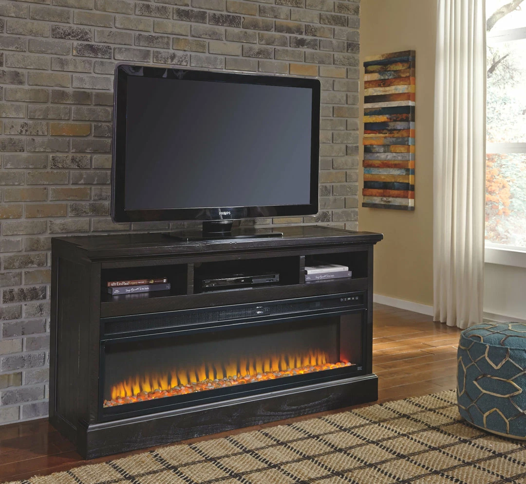 Add a touch of warmth and create beautiful ambiance for your TV viewing pleasure with this wide fireplace insert. Available as an addition on select TV stands and entertainment centers, this insert can easily replace a lower shelf in your entertainment center. With no hassle, maintenance or cleanup, delight in all the unique features of this fireplace via remote control. With the touch of a button, adjust the temperature, the color of the flame effect, or set the 12-hour timer for long-lasting enjoyment. Faux crystals enhance the flickering flameโor mix in stones for a natural touch (all included).