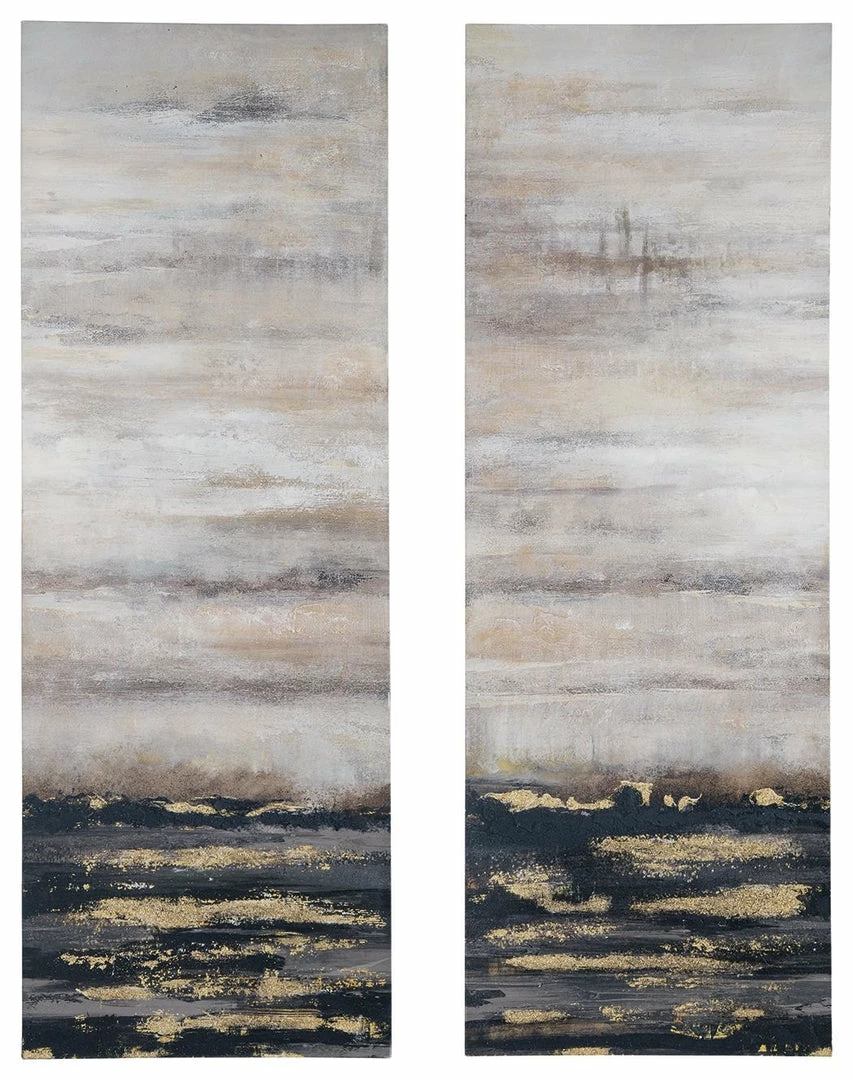 Bring a dynamic look to your decor with the help of this duo. The wall art set is an attention grabber, with pops of goldtone over shades of taupe, gray and black. The pieces can act as beautiful bookends to a gallery wall or bring a sense of continuity to your decor when hung separately.