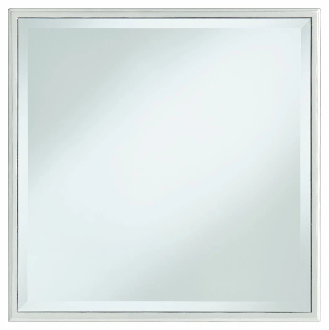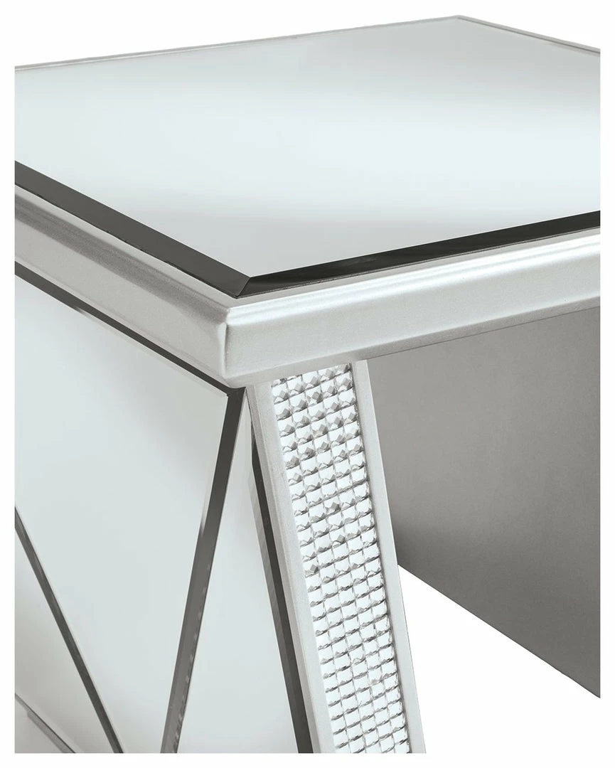 - Mirrored glass accents with inset rhinestone trim