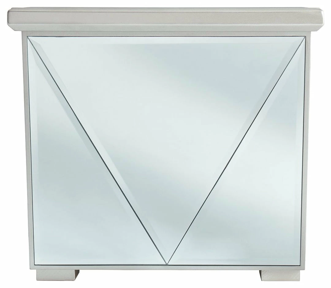Absolutely fabulous interpretation of Hollywood regency style. This bedazzled end table is a diva in the very best sense of the word. Embellished with inset rhinestones, beveled mirrors and a sparkling silvertone finish, this tableโs geometric design dares to be different.