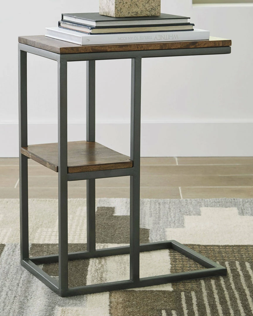 Put your style on a shelf with this cantilever accent table. Minimalist-chic styling combined with rustic wood and black-finished metal beautifully suit contemporary and industrial aesthetics.