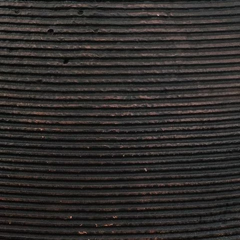 Ribbed textural rings give this vase a wonderful artisanal quality. An antiqued brown finish catches the eye, drawing attention to this elegantly earthy centerpiece.