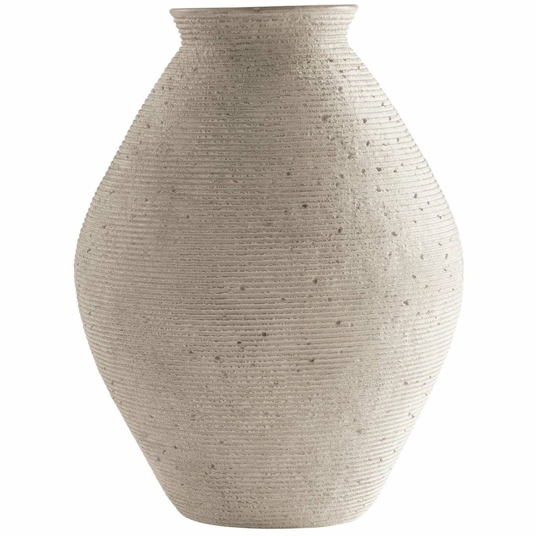 Ribbed textural rings give this vase a wonderful artisanal quality. An antiqued tan finish catches the eye, drawing attention to this elegantly fresh centerpiece.
