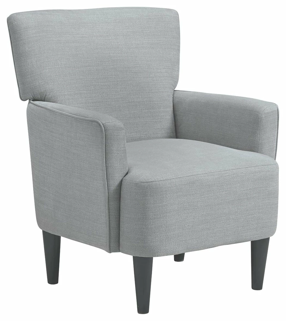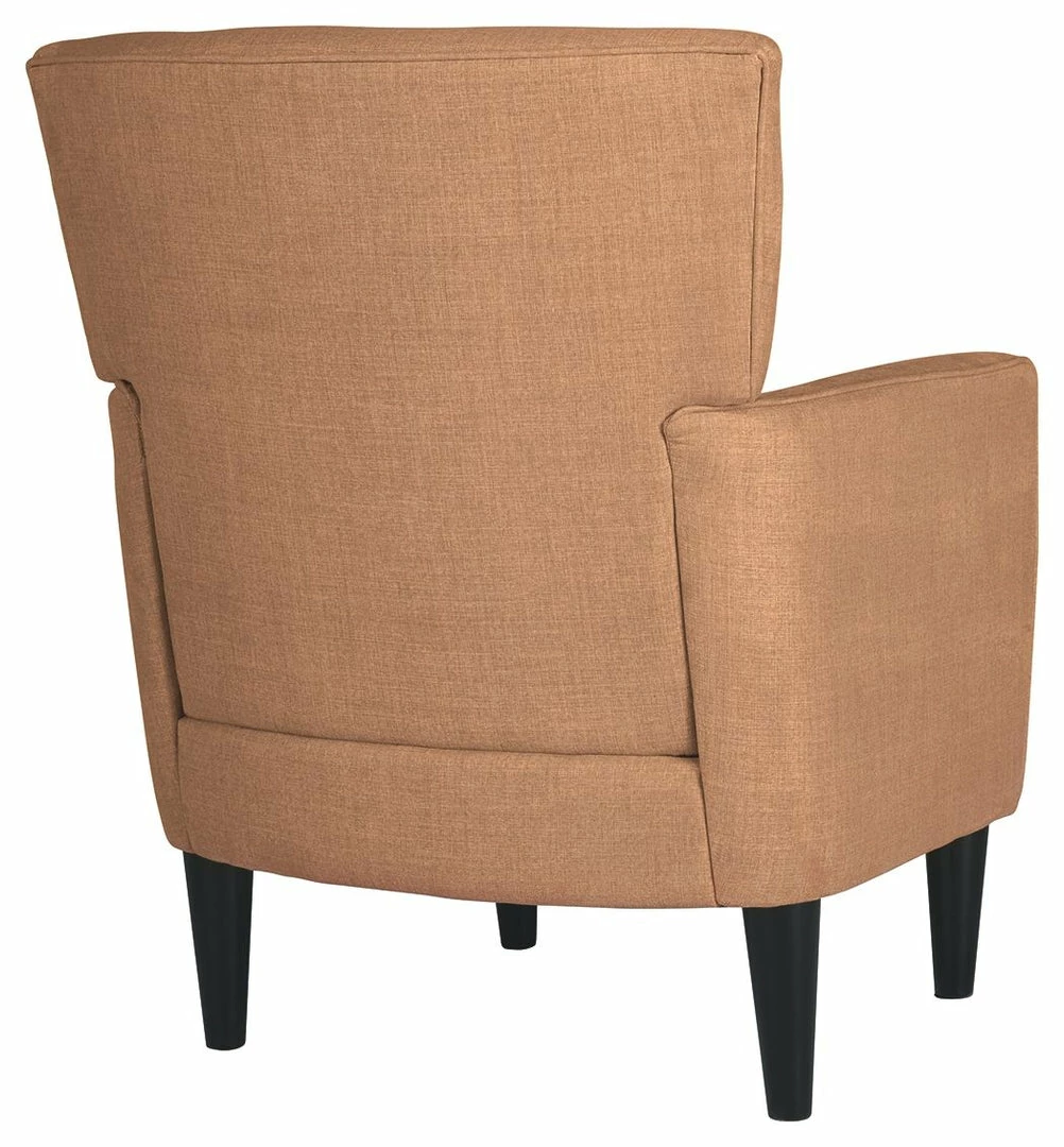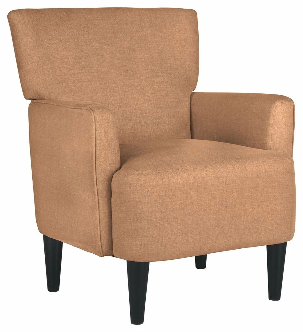 Tailor your space to your own tastes with this accent chair. Track arms and a rust upholstery create a crisp impression. Exposed legs in a black finish add to the air of modernity.