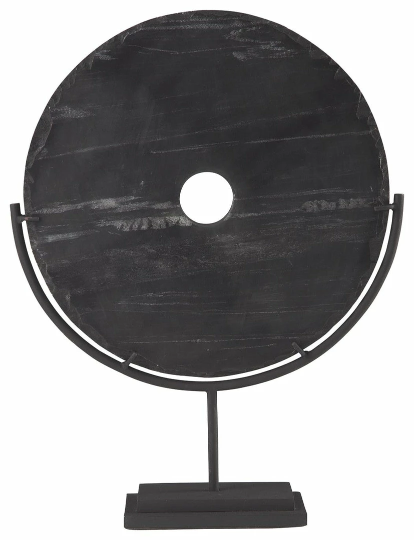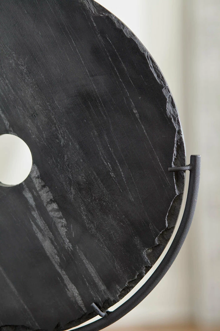An upscale twist. Like something you’d see in a trendy contemporary art gallery, this black marble disc sculpture on a black metal stand is as elegant as it is eye-catching. What an especially striking entryway piece.