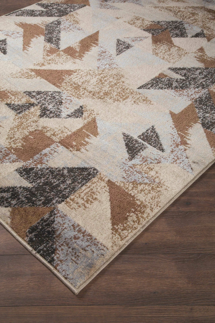 Bold yet subtle. That’s the beauty of this area rug. Its dynamic geometric pattern is downplayed by muted tones of gray, cream and shades of brown for a sense of earthy elegance.