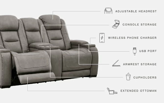 The Man-den – Gray – Pwr Rec Loveseat/con/adj Hdrst