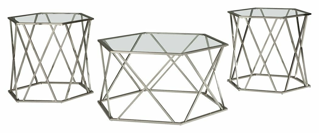 Madanere – Chrome Finish – Occasional Table Set (3/cn)