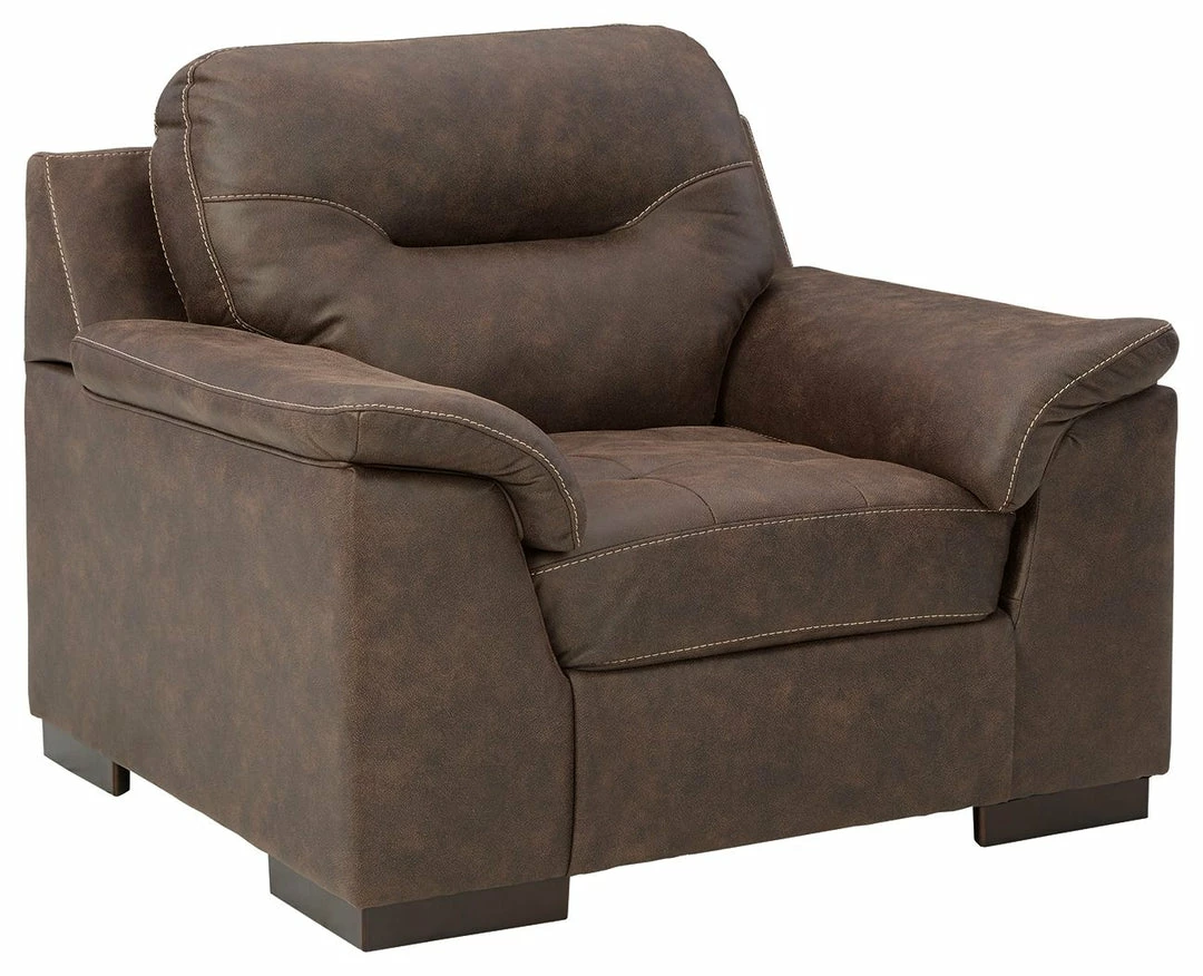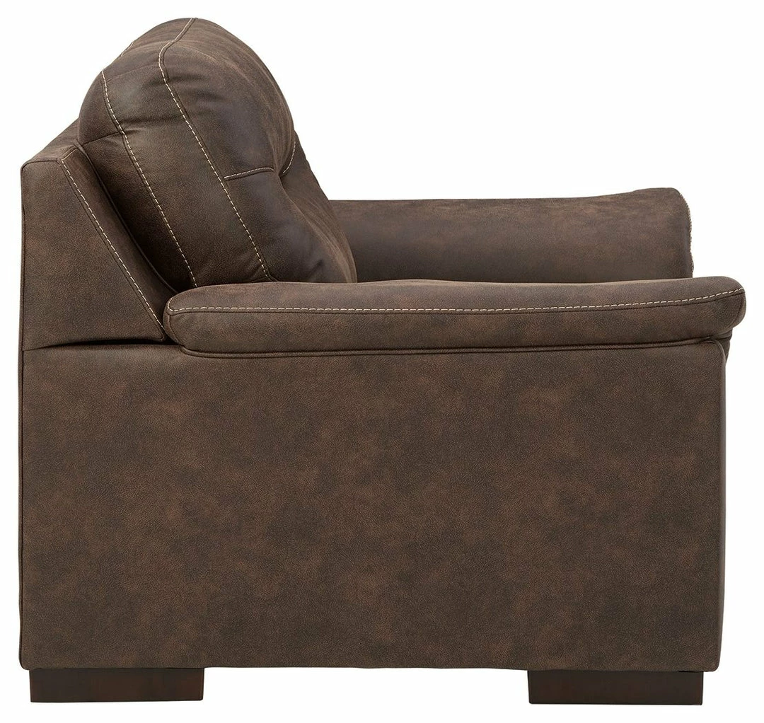 If you love the idea of a luxe look that won’t break the bank, make yourself comfortable with this alluring walnut brown chair. Designed to look like the real thing, it’s wrapped in a practical faux leather loaded with natural tonal variation and a soft hand feel. Appealing to a contemporary taste, its jumbo stitching, tufted styling and pillow top armrests are indulgently comfortable, with a streamlined look that tops off the high-end aesthetic made for everyday living.
