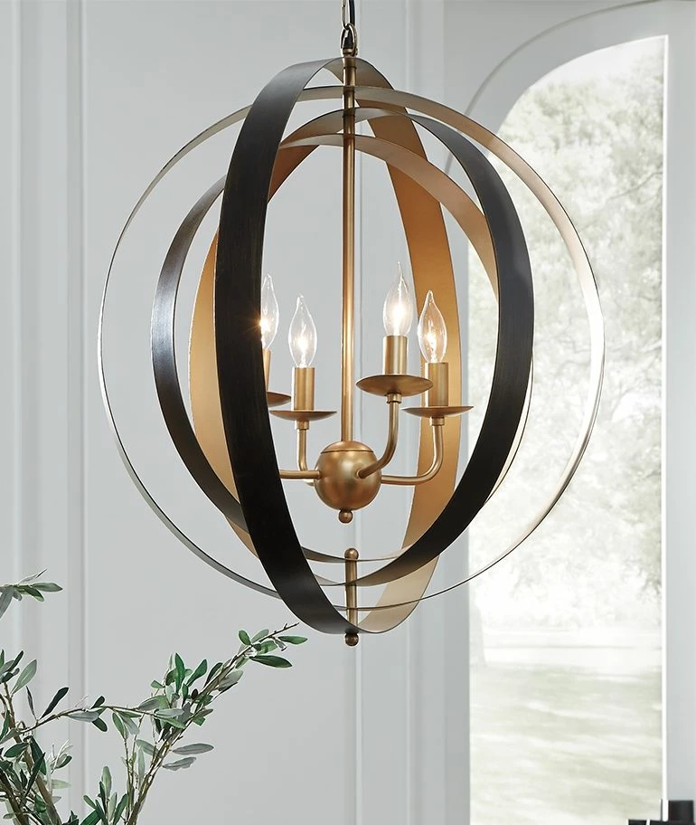 Extol your circle of influence with the classic black and goldtone elegance of this pendant light. Illuminate your home with the strong aesthetic of concentric rings, and watch how your style comes full circle.