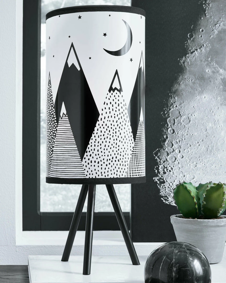 This table lamp is designed to enhance the nature-inspired mood of your living space. Crafted of metal with a unique mountain-themed shade, the lamp offers a contemporary spin on traditional lighting decor.