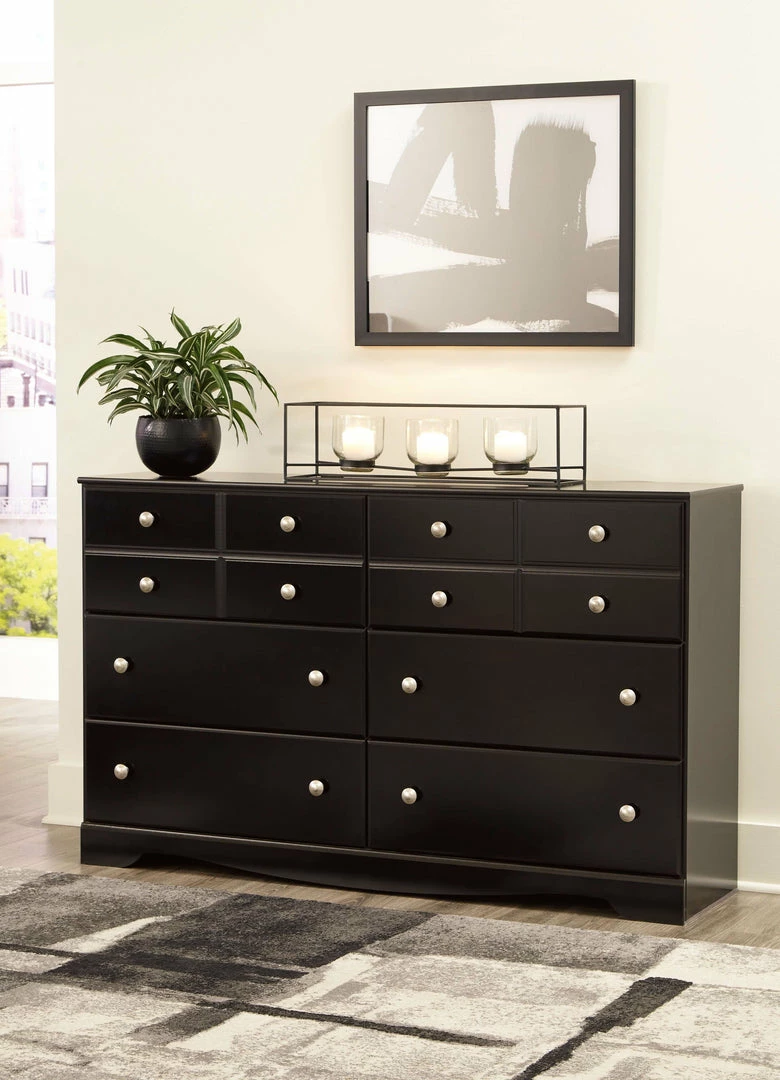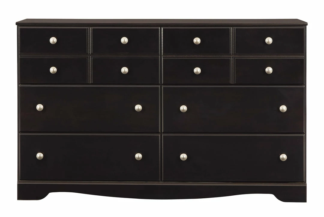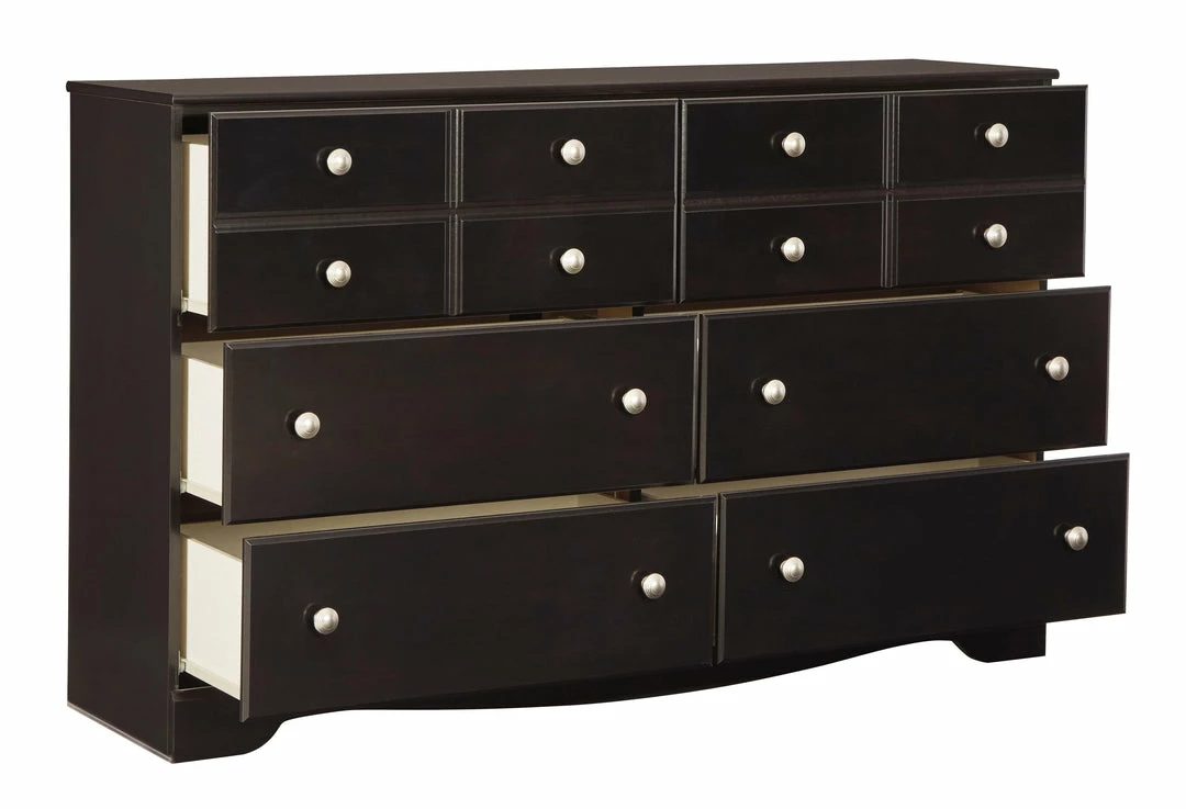 Satisfy your taste for casual refinement with this dresser. A rich almost-black finish and clean lines allow it to fit in with a variety of decor. The ample storage space of the six smooth-gliding, lined drawers brings function to sophisticated form. Satin nickel-tone knobs speak simplicity with style.