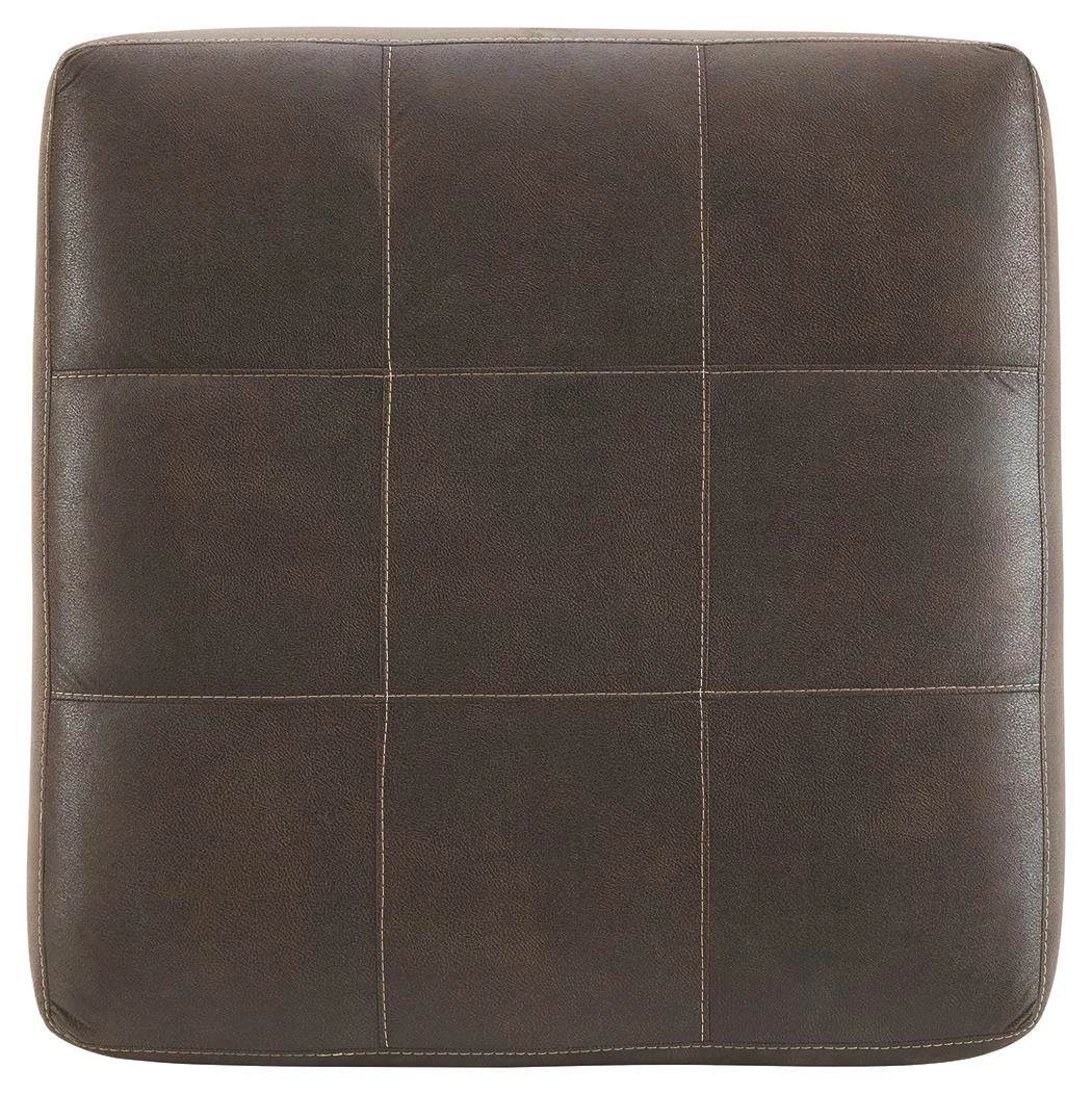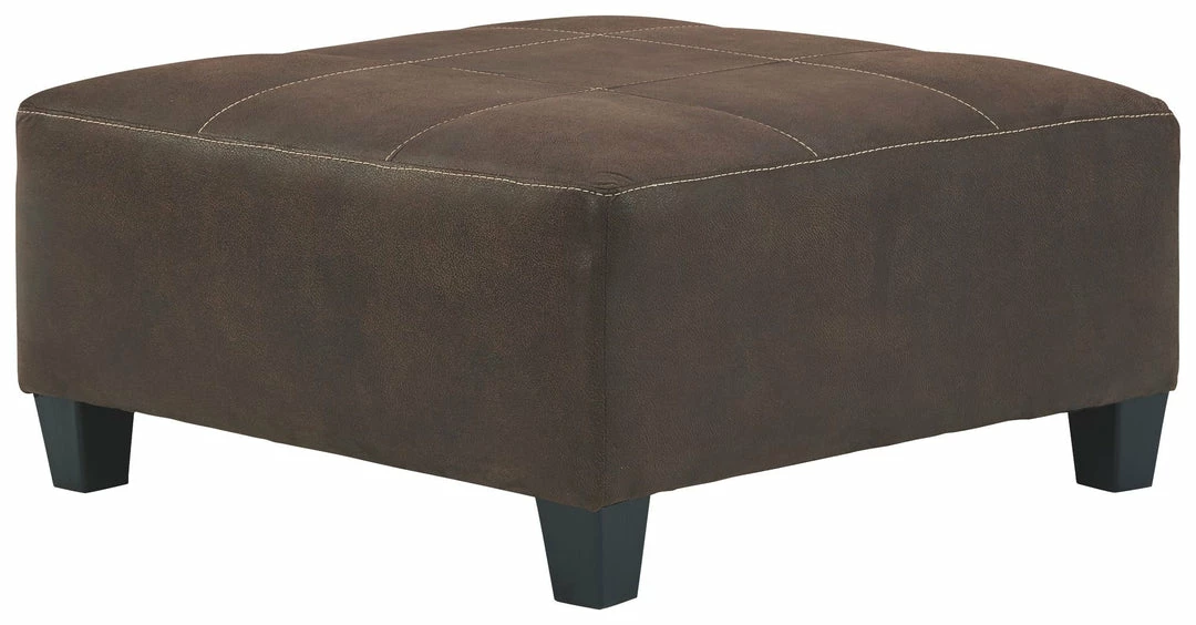 If you love the cool look of leather but long for the warm feel of fabric, you can take comfort in this oversized ottoman. Wrapped in a fabulous faux leather with a weathered hue and hint of pebbly texture to resemble the real deal, this decidedly modern ottoman proves less is more. Elements include jumbo stitching for fashion-forward flair.