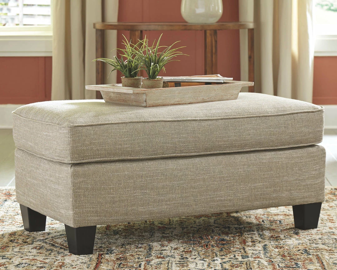 This ottoman brings a classic look beautifully into the present. Loaded with multi-tonal interest, the ottomanโs wheat-hue upholstery is a fresh choice in neutrals. Clean-lined tapered feet in a dark finish infuse modern appeal.