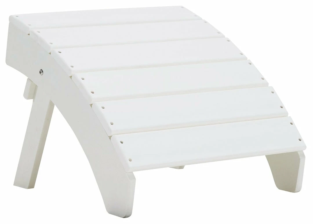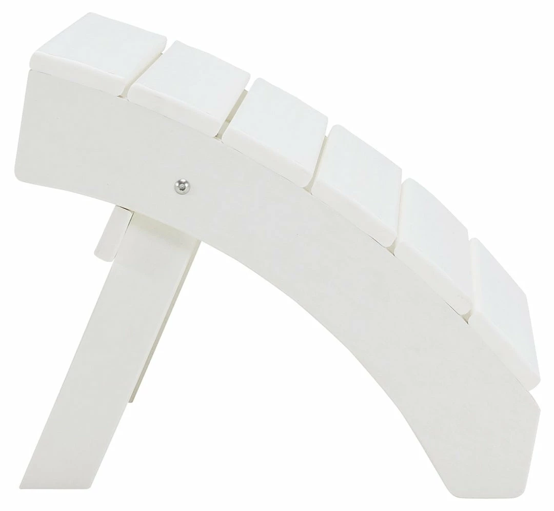Add cottage-quaint charm to your outdoor oasis with this ottoman in white. Made of MEGA TUFF™ high-density polyethylene material, it’s sure to weather the seasons beautifully. The ottoman’s slatted styling with sloped shaping provides exceptional form and function.