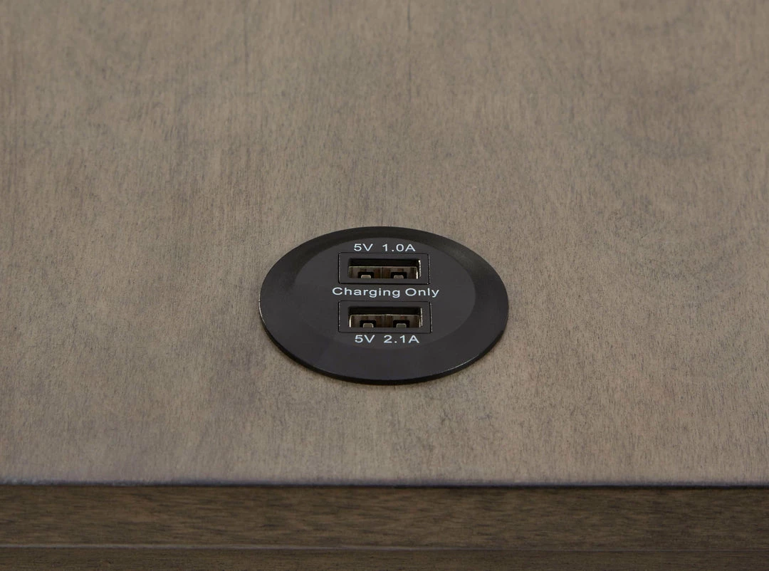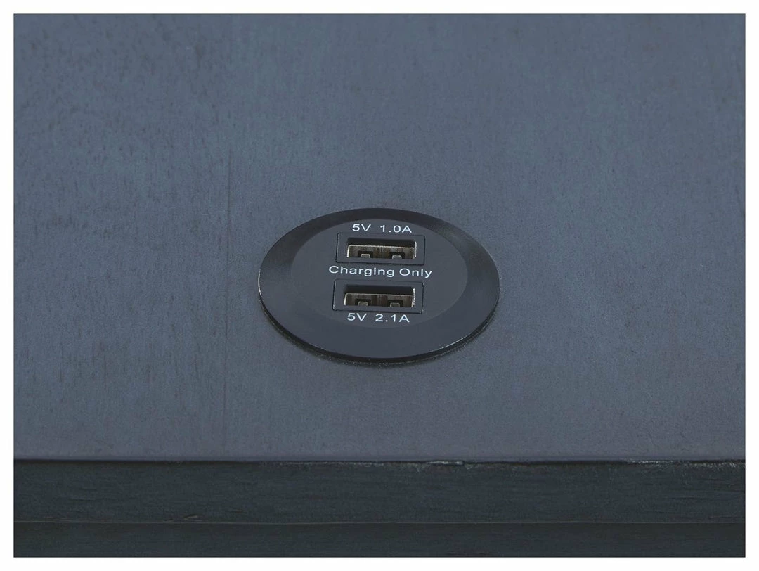 A study in seeming contradictions, this accent table is both practical and stylish. A storage drawer lets you keep necessary items in reach while out of sight, and two USB ports keep your devices powered up as you wind down. The clean lines and antique blue finish give this piece a high-design profile to elevate your space.
