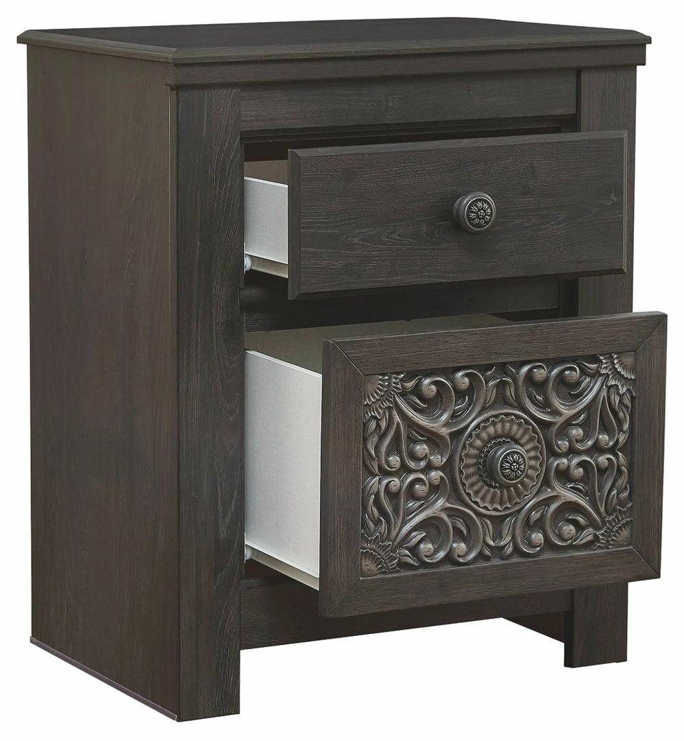 Showcase your trend-setting spirit with this nightstand. Inspired by bohemian tapestries, exquisite carved medallion pattern is a testament to boho-chic style. Sophisticated dark finish sets a foundation for a room bursting with personality. Best of all, nightstand includes handy USB charging ports.